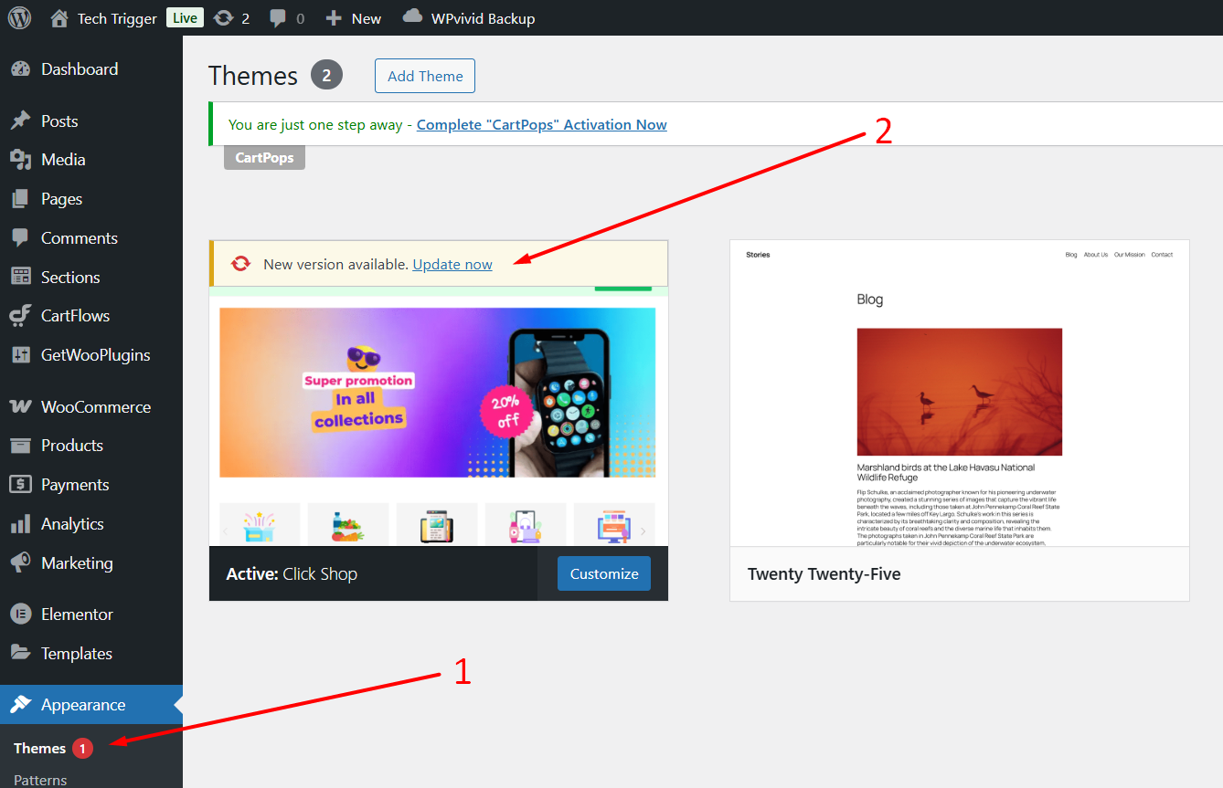 Appearance>Themes এ গেলে, তারপর যদি এই থিমের আপডেট আসে তাহলে এরকম দেখতে পারবেন ছবির মত।